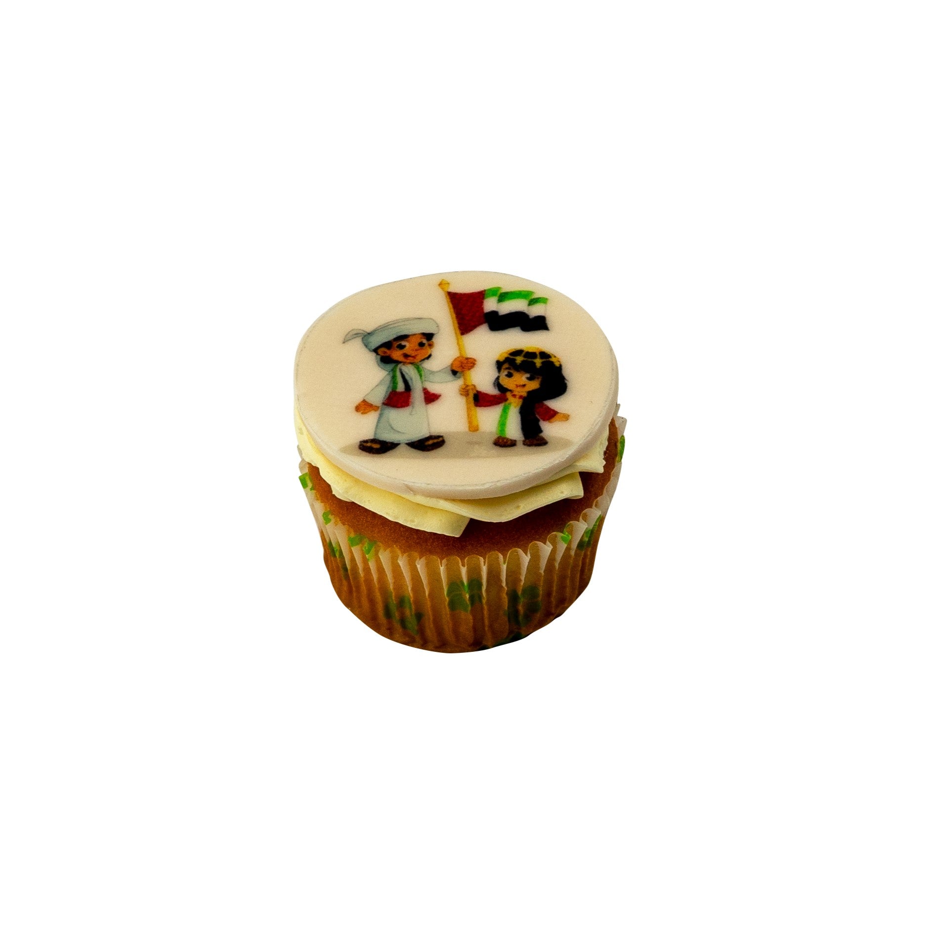 Vanilla Cupcake featuring cute kids holding the UAE flag—sweetly celebrating National Day spirit!