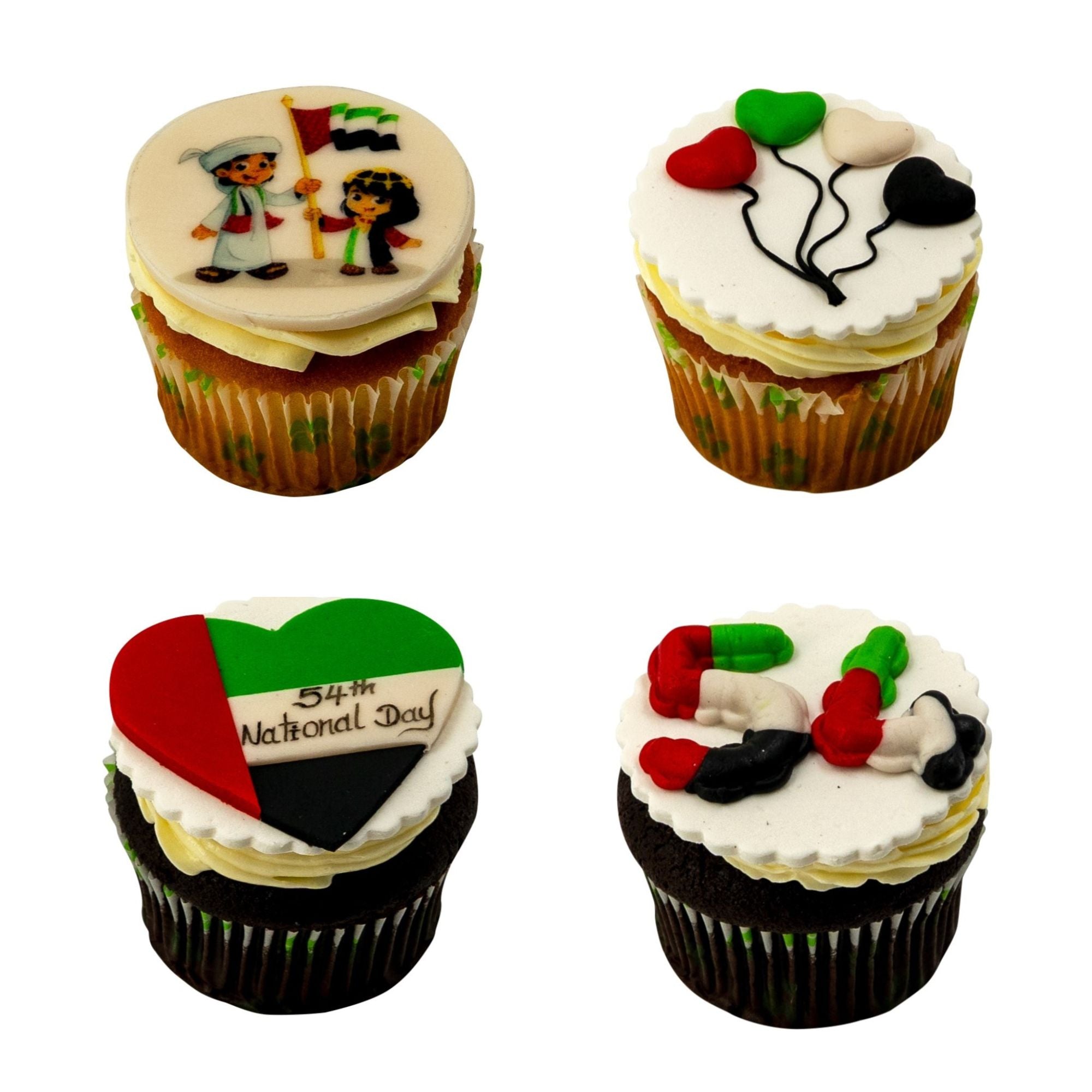 Pack of 4 festive cupcakes celebrating National Day with vibrant UAE-themed designs!